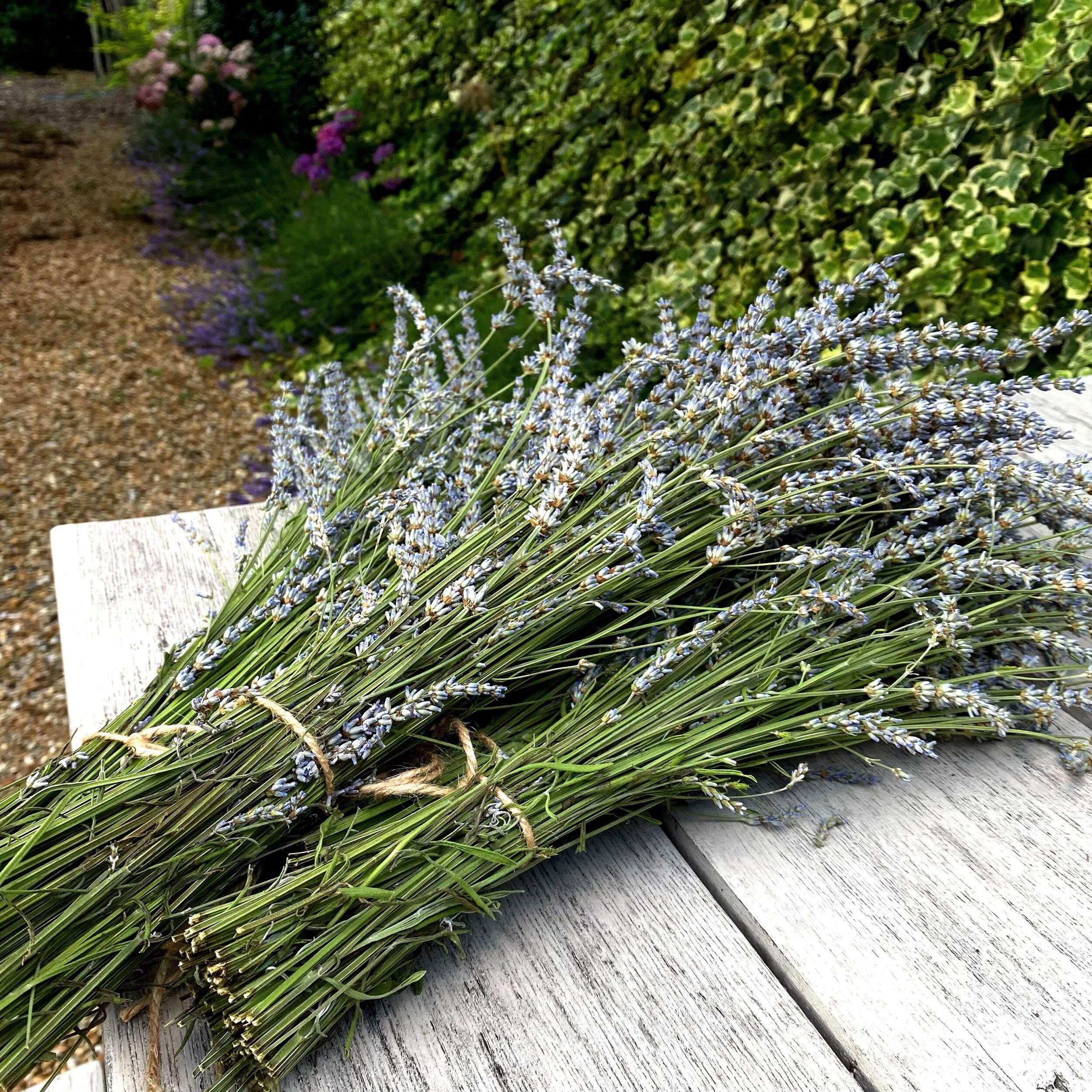 家で、ワイルド化しているラベンダーを刈って束ねました。