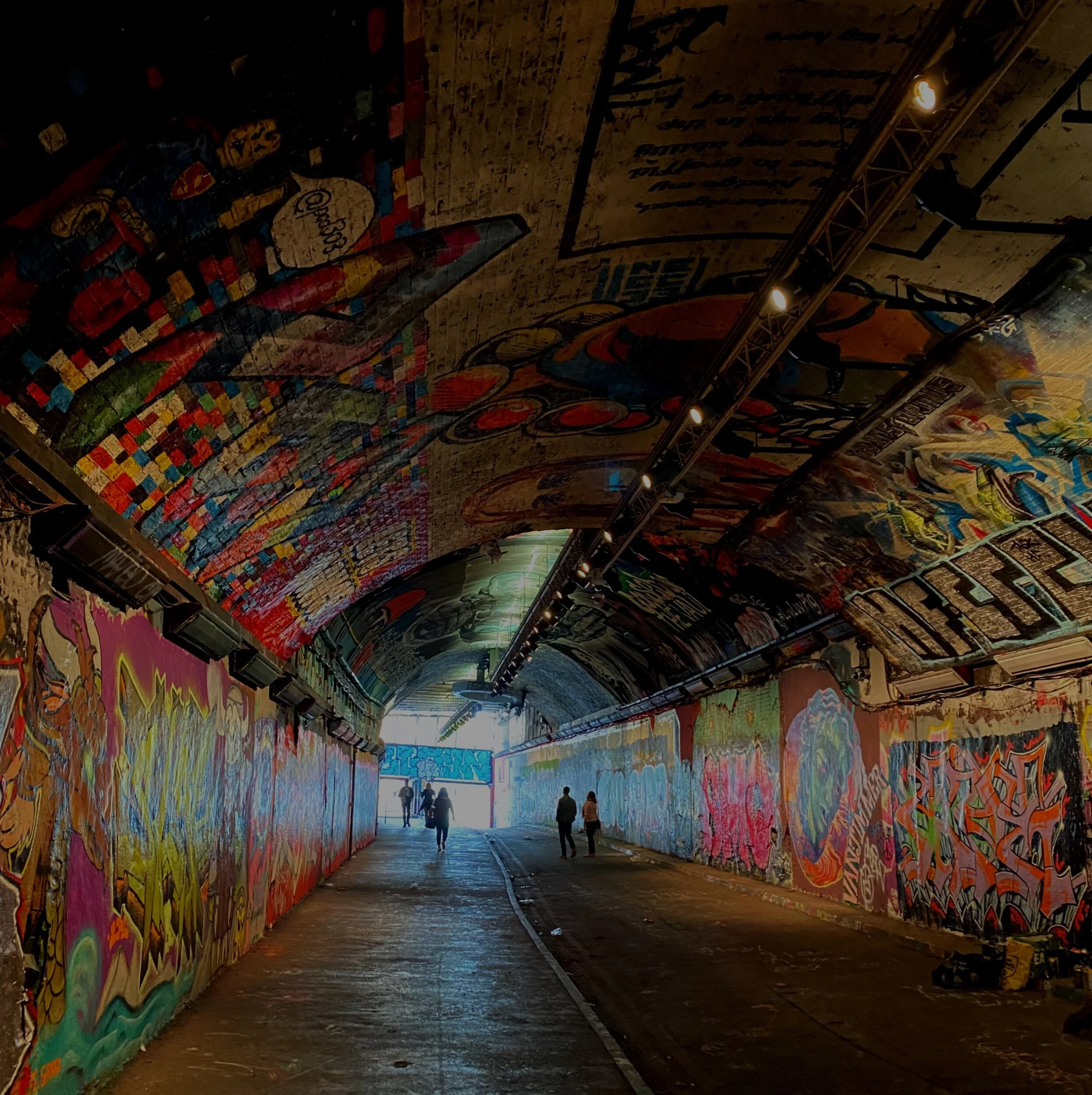 写真は、ウォータールー駅近くにあるBanksy Tunnelとも呼ばれる