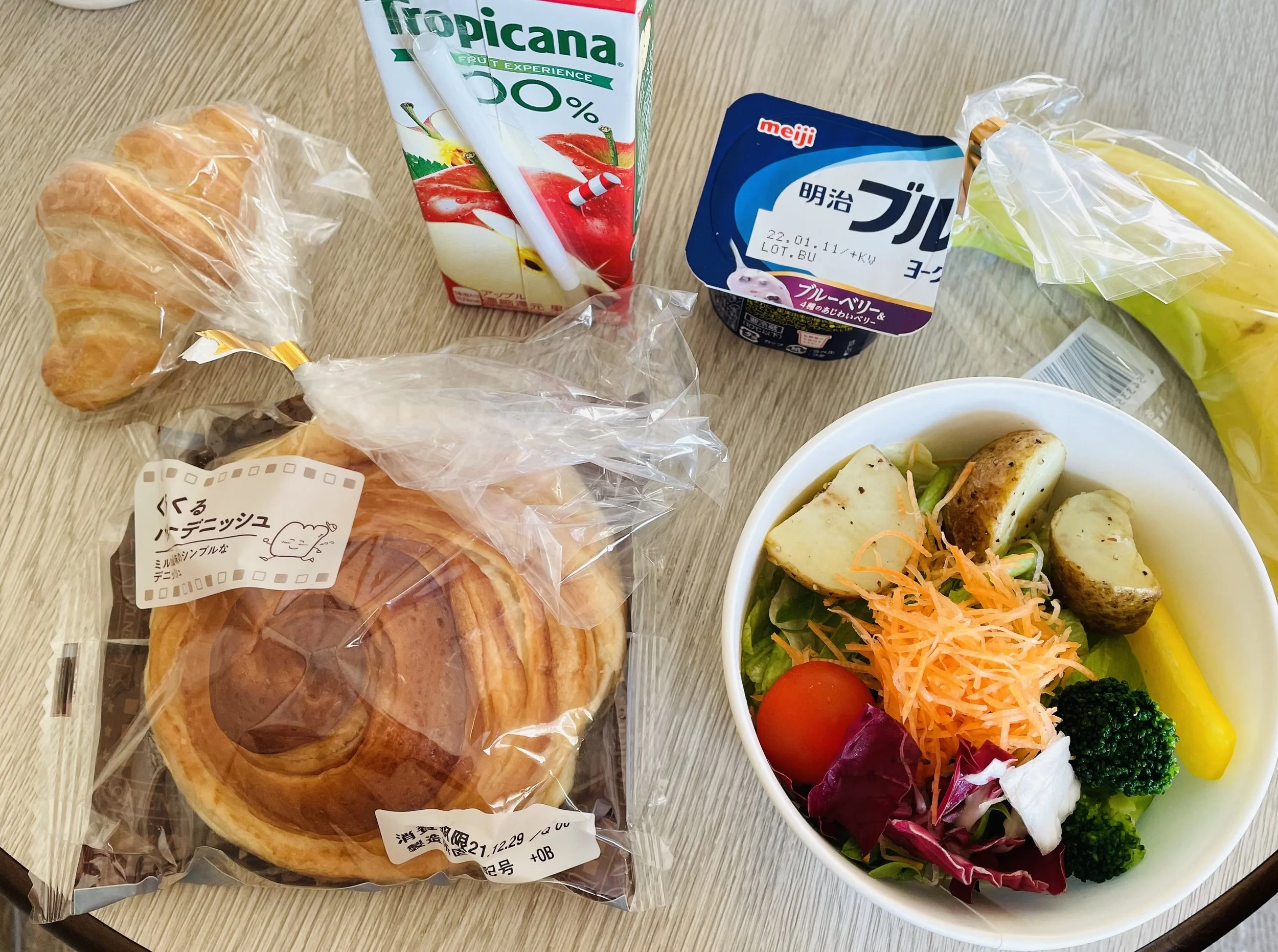 朝はヨーグルトとバナナ、昼食と夕食にはデザートも!