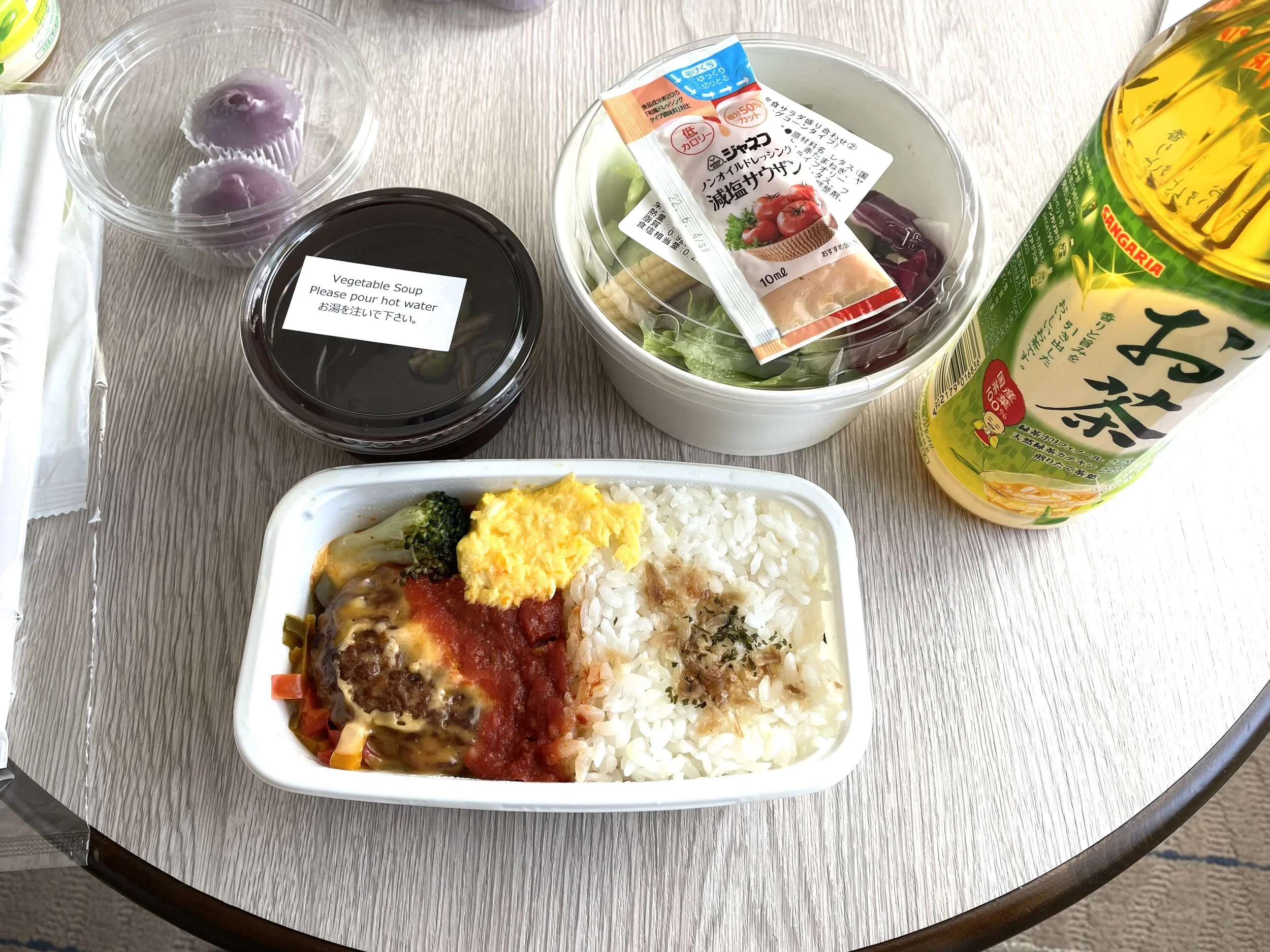 ご飯は温めてあり、毎回サラダとお茶がついています。